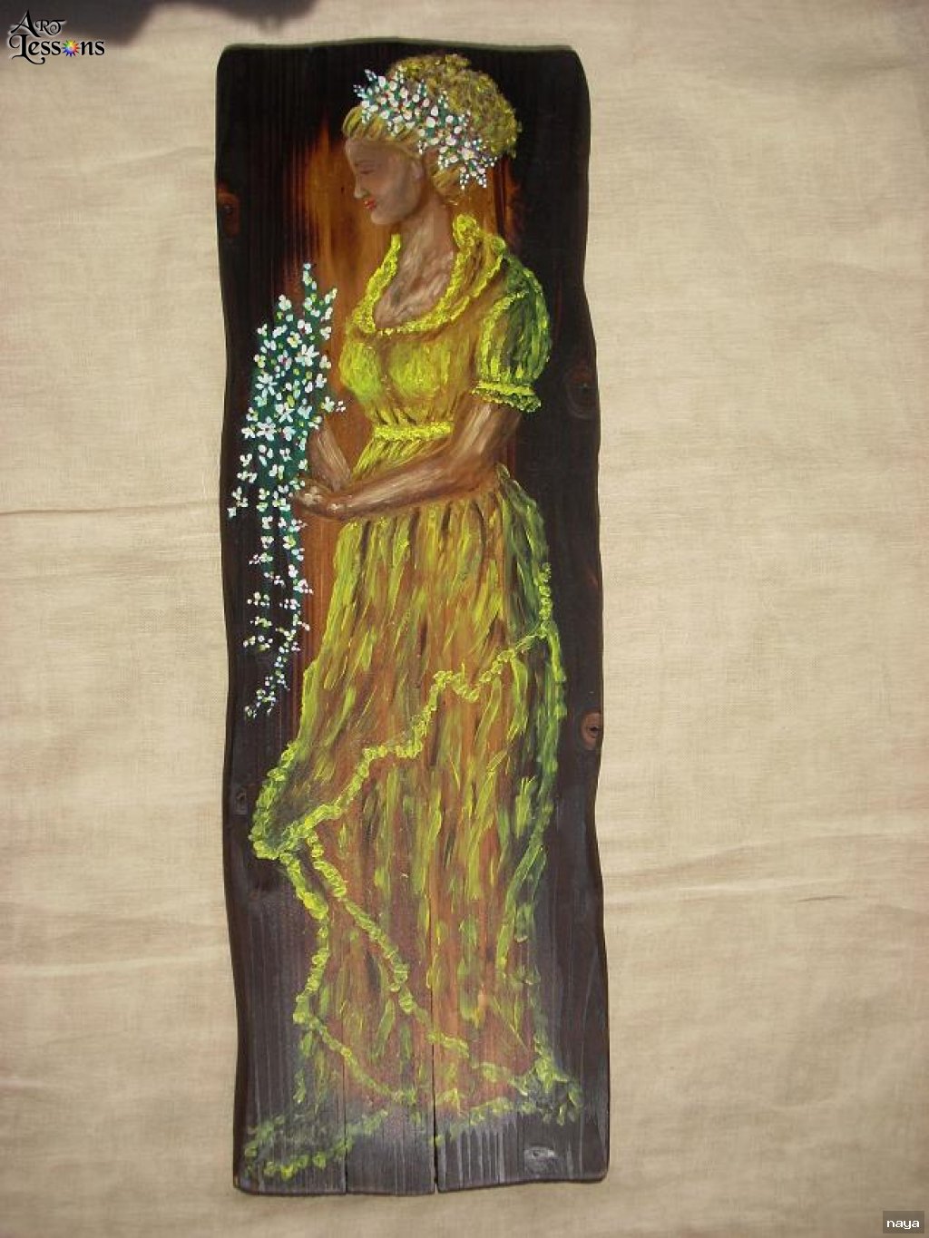 κοπέλα-λάδια νερού σε παλαιωμένο ξύλο ›